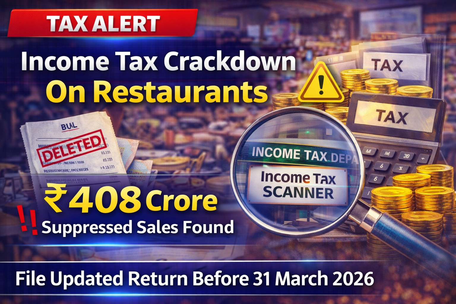 The Income Tax Department has launched a nationwide verification exercise targeting restaurants suspected of suppressing their turnover and under-reporting income. The initiative is part of the government’s effort to improve tax compliance in the Food and Beverage (F&B) sector, where discrepancies between reported sales and actual transactions have been detected.